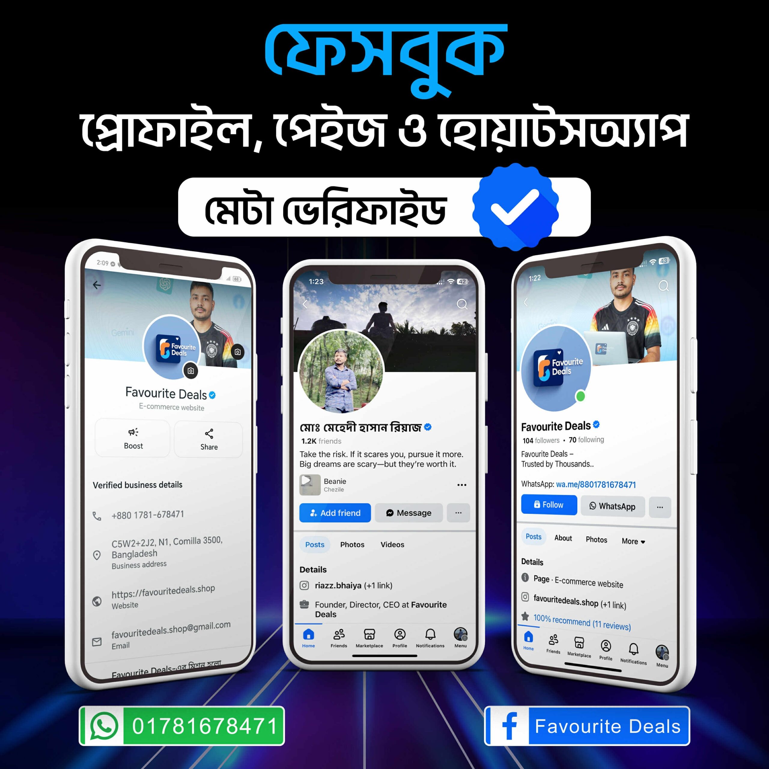 বাংলাদেশে Meta Verified নেওয়ার প্রসেসটি অনেকের কাছে জটিল মনে হয় — তাই Favourite Deals-এর অভিজ্ঞ টিম আপনাকে লাইভ WhatsApp কল ও Screen Share-এর মাধ্যমে সম্পূর্ণ প্রসেস করে দেয়।